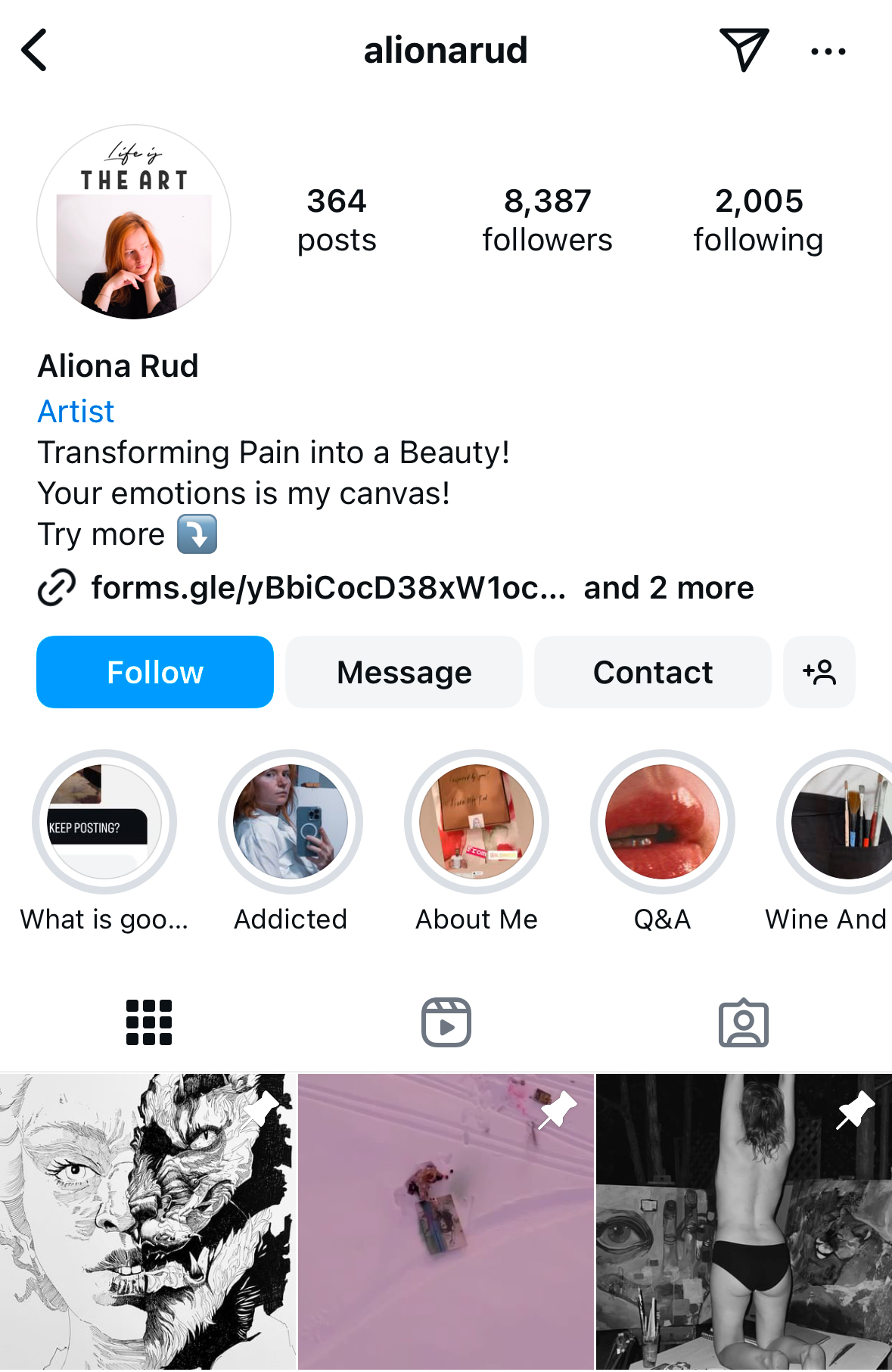 Ошибки в упаковке: 1) Я рекомендую в жирной строке писать ключевые слова по тематике блога — так тебя будут находить как пользователи инстаграм через поиск, так и сам алгоритм приложения будет лучше регистрировать твой блог и контент. Например, Aliona Rud | Artist | Prints