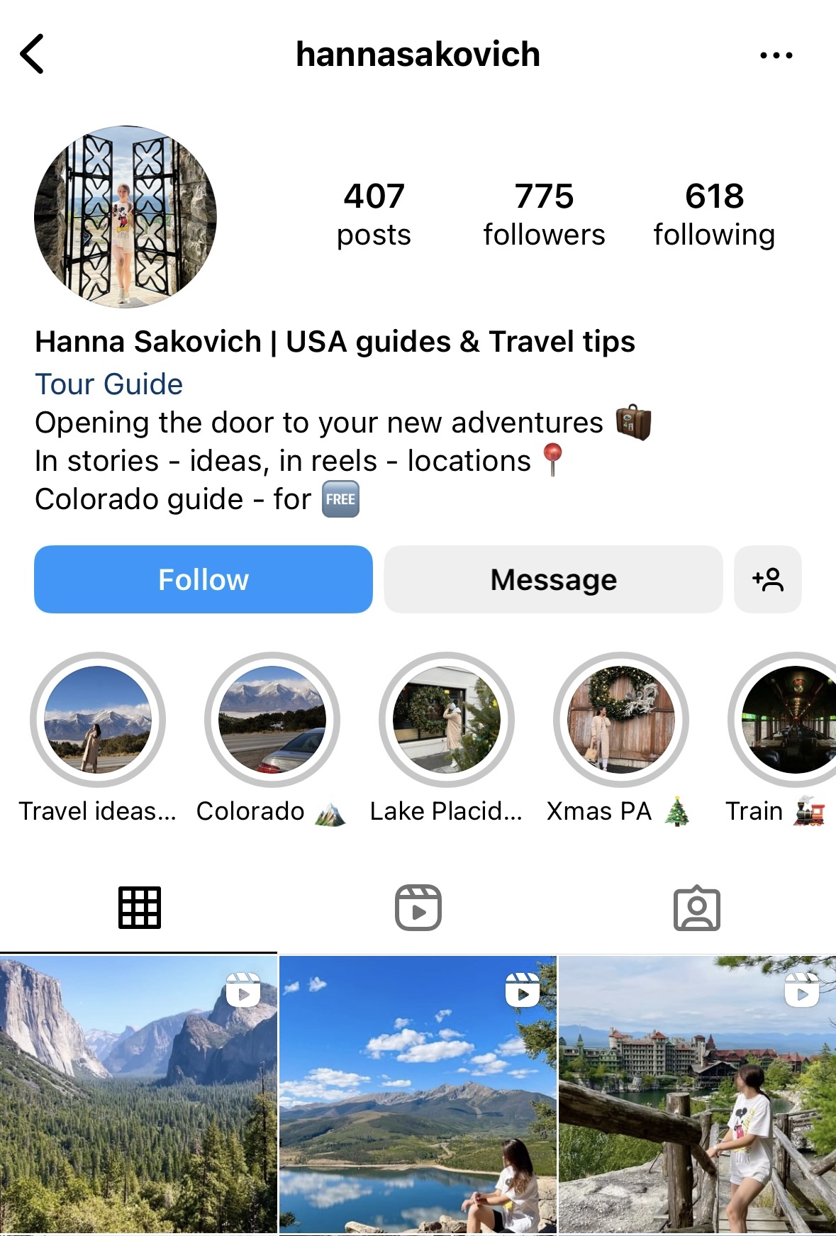 Во-первых, я бы переместила эмодзи в начало строки. Таким образом они будут сразу показывать, о чем строка (смотри пример у меня в профиле в шапке). Во-вторых, первую строчку шапки (opening the door…) в целом можно оставить. Но в идеале я бы заменила это на что-то более конкретное (сейчас звучит чутка эфемерно). Например, на "helping you to plan your next US trip" или что-то подобное. Во второй строке я бы написала какой-то уникальный или удивительный факт о тебе, с помощью которого ты будешь запоминаться. Если это факт, связанный с путешествиями — то вообще супер. Например, "посетила 47 штатов из 50" или "посетила 103 страны". Или же "путешествую каждые выходные, работая в офисе".
