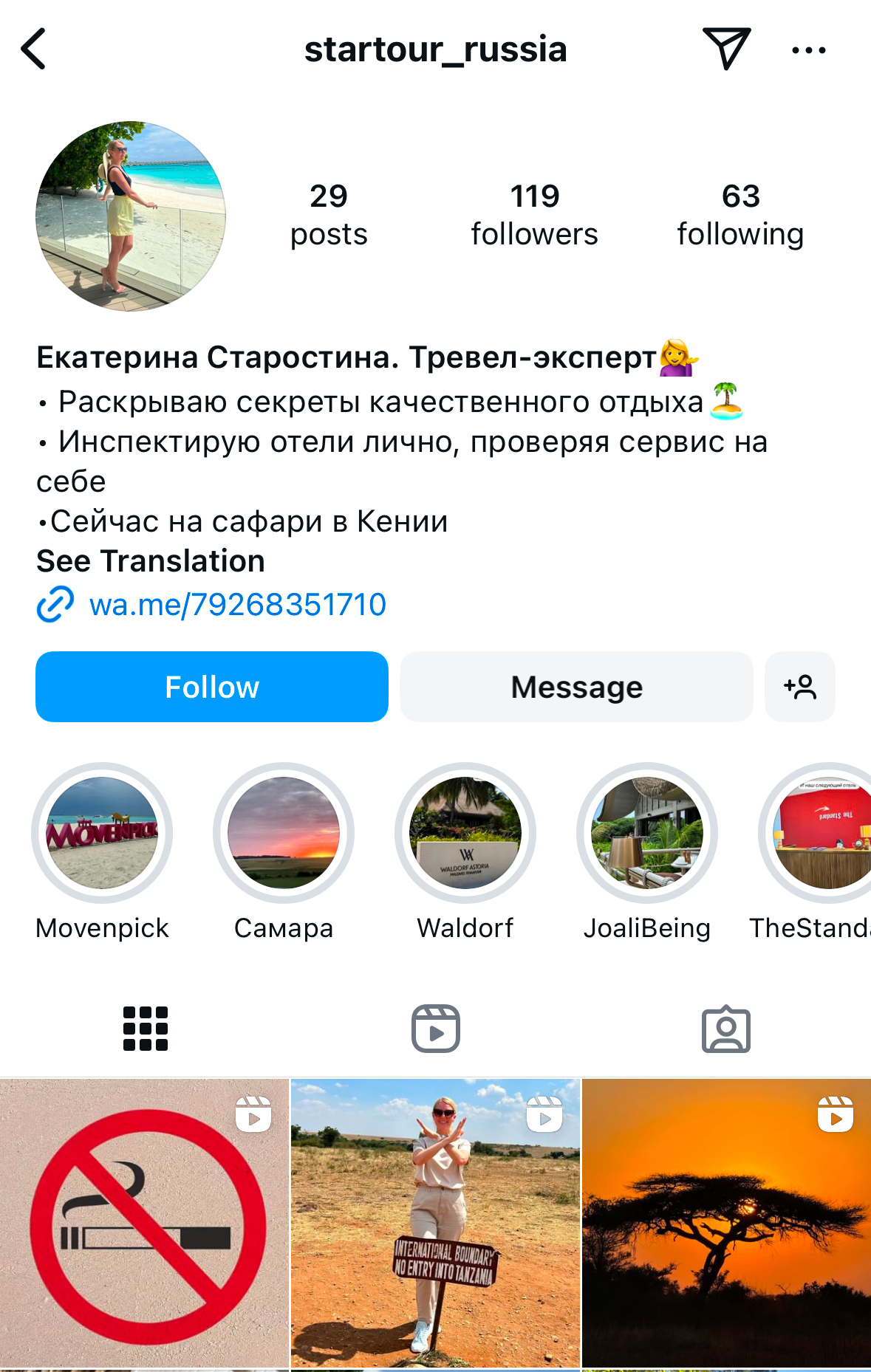 Например, у тебя это может быть серия рилс с лайфхаками по путешествиям или же 3 строка может выглядеть так: "Смотрите мой хайлайт "Лучшие отели" для следующей поездки"