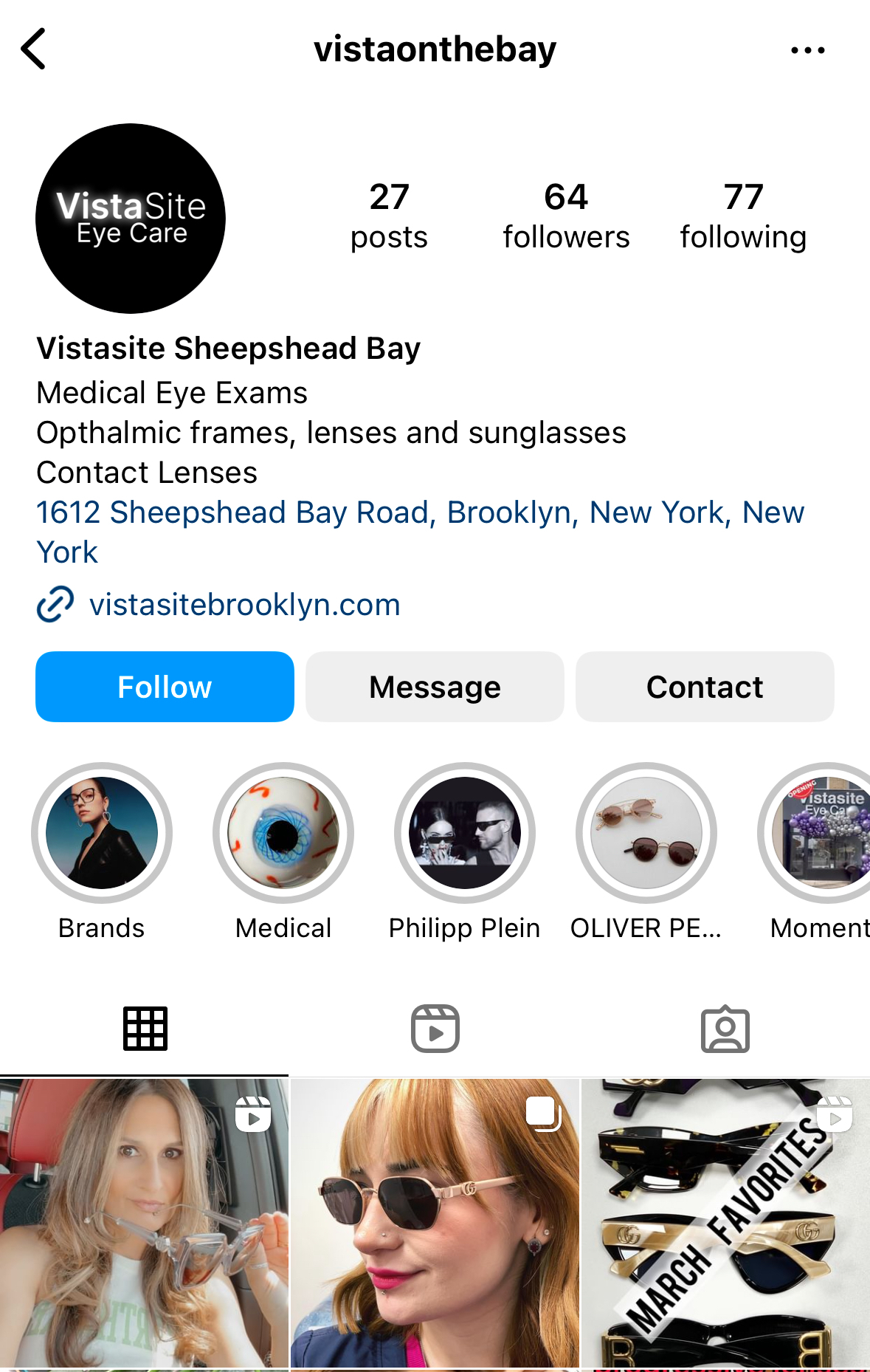 Ошибки в упаковке: 1) главная цель блога — продать подписку на сам блог, и затем из подписчиков переводить людей в клиенты. Шапка профиля должна отвечать на вопрос "для чего зрителю подписываться на блог?". По сути блог сейчас направлен только на горячих клиентов, которые прямо сейчас ищут очки, а это узкая целевая аудитория.